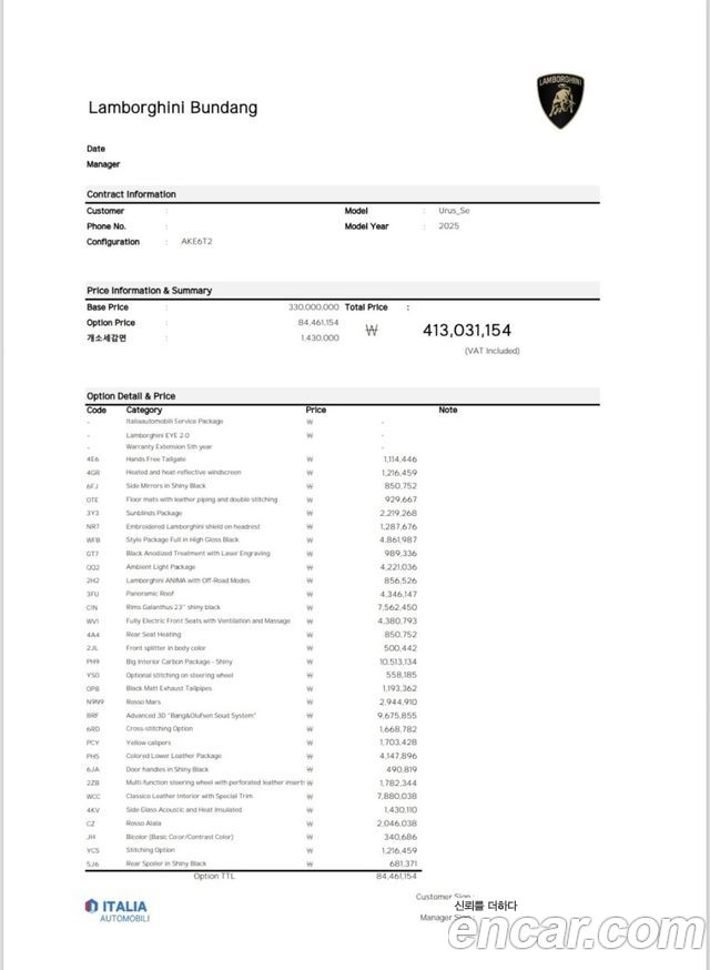 Lamborghini Urus из Кореи Encar